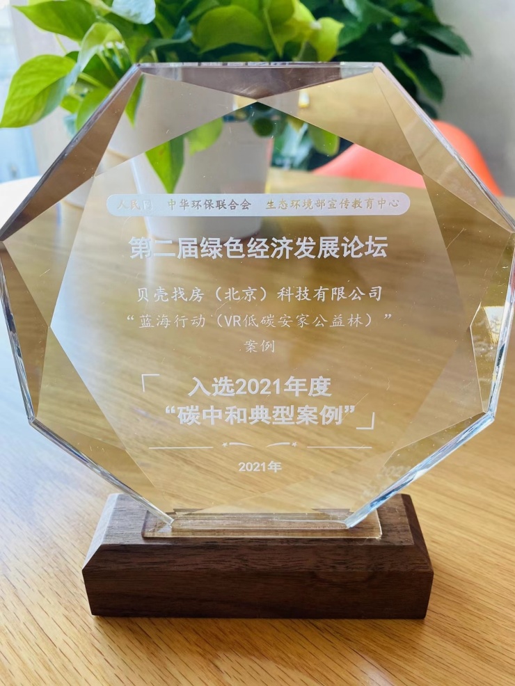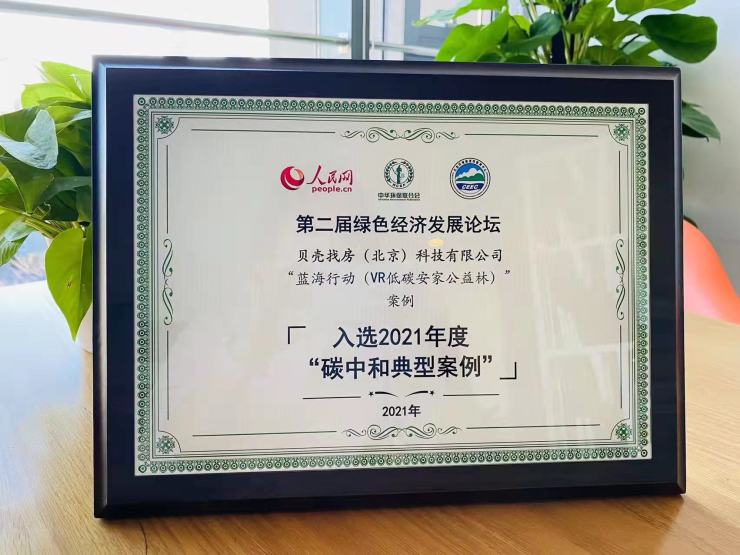 聚焦“双碳”目标,推进绿色发展,11月19日,第二届绿色经济发展论坛以线上直播形式召开,并正式公布2021年度“碳中和典型案例”名单。作为科技驱动的新居住服务商,贝壳找房发起的“蓝海行动(VR低碳安家公益林)”成功入选,标志着贝壳的科技公益成果获得广泛认可,也进一步展现出贝壳坚持向上向善的责任担当。