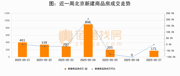 【北京成交日报】05月27日新房成交171套、二手房681套;涨价房源79套