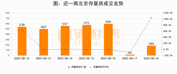 从存量房来看,2023年06月18日北京存量房单日成交184套,比昨日增加168套,环比上涨1050%。从近一周存量房成交来看,北京存量房日均成交套数为423套,06月18日单日成交184套,低于近一周平均水平56.5%。