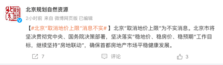 北京市规自委:“取消地价上限”消息不实,继续坚持“房地联动”