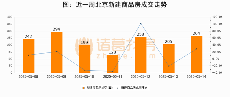 【北京成交日报】05月14日新房成交264套、二手房792套;涨价房源77套