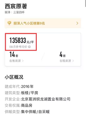那么您肯定要问为什么融府会卖的这么快?那咱就要看当时边上的其他项目,比如上面那哥儿俩西府大院和西宸原著,我记得的当时售价基本在11左右,跟融府形成了明显的价格倒差,时至今日我用绿中介的APP看了看西宸原著的二手挂牌均价,得到的结果是这样的。