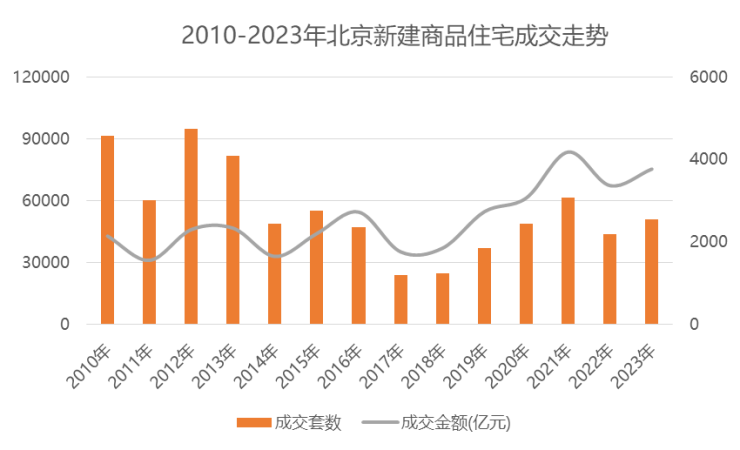 新房走势和二手房类似,2023北京新建商品住宅(含普通住宅、别墅,不包括共有产权房)共成交50875套,同比上涨16.1%;