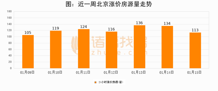 根据诸葛找房数据显示,北京24小时涨价房源量为113套,较01月14日减少21套,环比下降15.7%。与此同时,涨价房源占比小幅回落,对于购房者来说是一个入市窗口期,购房者可抓住时机入市。