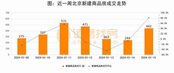 【北京成交日报】01月15日新房成交442套、二手房652套;涨价房源113套