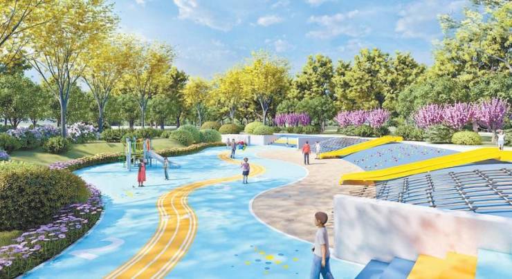 结合园区已有道路,重兴寺地块将建成一条2.35千米大环线的健身步道,并增设二级游步道,依托地形设置登山步道。儿童活动区还设置了户外儿童拓展项目,并与生态科普结合,以培养孩子们保护生态的意识。