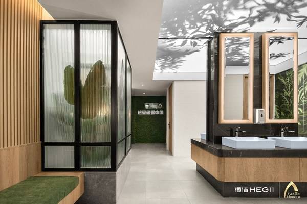 作为此次项目的首站改造地,"重庆书城—新华书店"几乎见证了这座"山城"近70年发展,更承载了几代"山城人"的美好回忆。为了能让这个承载着记忆的公共空间重新焕发活力,在此次"重庆书城—新华书店"的改造中,恒洁和知名设计师赖旭东将"环保可持续"的理念巧妙糅合进设计中,除了通过定制瓷砖、影息设备、绿植墙等打造视觉上的"绿色空间"外,还使用了多款实力非凡的新国货卫浴产品,赋能环保可持续发展。