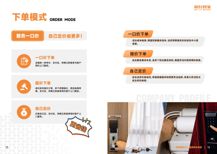 好在奇兵到家带来了“省钱秘籍”!平台有三种报价模式,全国一口价,不管在哪都能精准控制成本;自主定价模式更贴合自身需求;也可以选择报价下单让多位师傅在线报价,从中挑出技能好、口碑佳的。这三种方式,无论选哪种,都省钱又灵活,完美解决商家在售后成本方面的困扰,让商家能把钱花在刀刃上,安心搞经营。