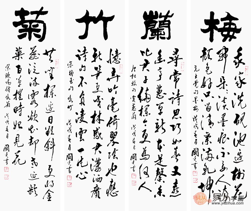刘炳森亲传弟子于国光四条屏书法《梅兰竹菊》