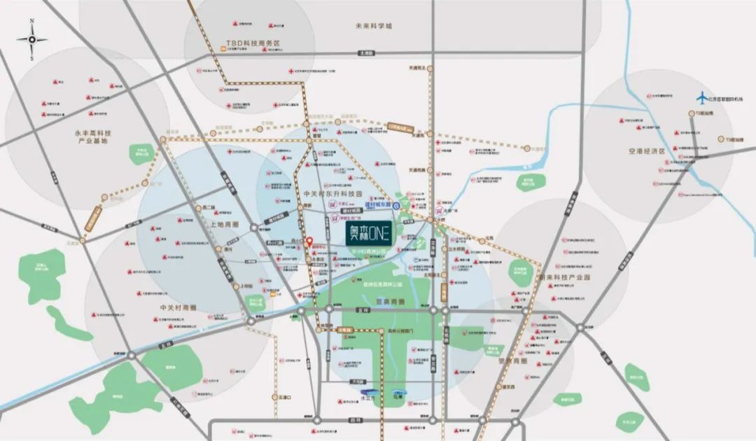 奥森one地处在中轴龙脉之上,位置较佳;以故宫为中心,沿着北中轴来看,向北分别是钟楼、鼓楼、跨国三环的元大都遗址公园就是亚洲较大的城市公园奥森公园再到项目,奥森one位于北中轴第二个居住组团,地处奥森北的核心位置。