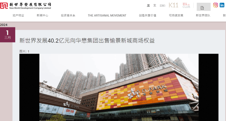 事实上,这并非新世界发展今年首次处置非核心资产。此前的3月1日,据新世界发展官网披露,新世界发展与华懋集团签订商用物业买卖协议,将向华懋集团出售香港荃湾愉景新城商场及停车场全部权益,以优化资产组合,总现金代价为40.2亿港元。