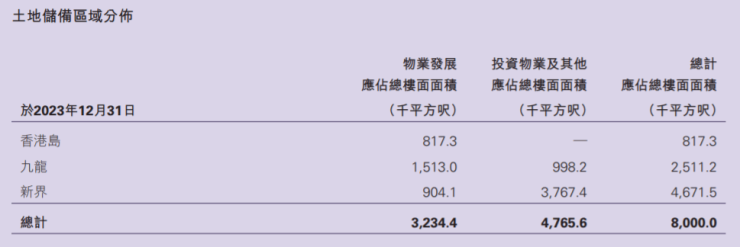 截至2023年末,新世界发展在香港拥有的土地储备为800万平方呎(1平方呎≈0.09290304平方米)。相较其他港资房企来看,截至2023末,恒基地产在香港的土地储备为2050万平方呎,新鸿基地产在香港拥有的土地储备为5858万平方呎,长实集团在香港拥有的土地储备为700万平方呎。