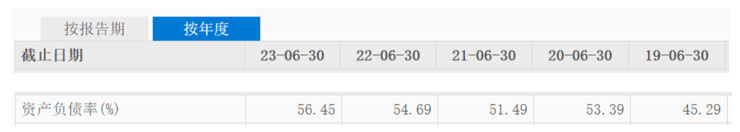 据东方财富网统计,2019财年至2023财年,新世界发展的资产负债率分别为45.29%、53.39%、51.49%、54.69%和56.45%。可供参考的是,据2023财年数据,新鸿基地产、长实集团和恒基地产的资产负债率分别为25.64%、21.51%和36.58%。