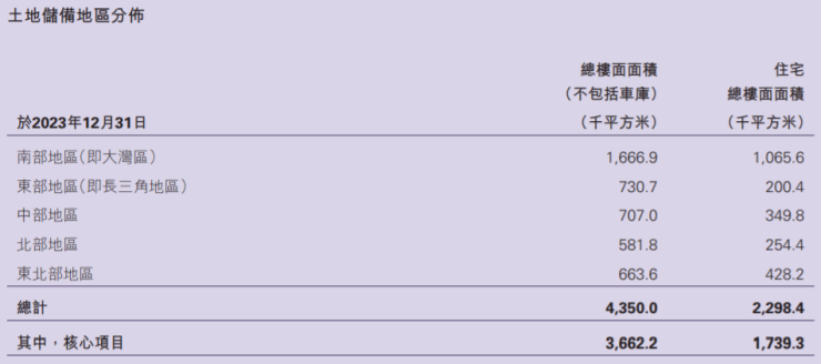 目前,新世界中国在内地的项目遍布20多大城市,包括住宅、服务式公寓、别墅、写字楼、商场、多用途综合大厦、酒店及度假村等各类型物业。据中期报告数据,截至2023年末,新世界发展在内地的土地储备总楼面面积为435.0万平方米,其中住宅为229.8万平方米,主要分布于广州、深圳、佛山、武汉、上海、宁波、杭州、北京等城市,约64%项目位于大湾区及长三角区域。