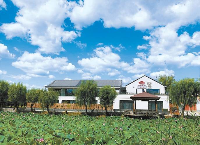 流转村民闲置房屋,翻建成白墙黛瓦的民宿小院,荷府热热闹闹迎客了。村里老人多,民宿20多位员工吃饭没地儿,民宿主袁野和村委会一合计,开办起老年餐桌:由村委会免费提供场地,荷府员工做大厨,民宿农庄直供食材,村里65岁以上的老人一顿饭只需掏2块钱。“疫情期间不堂食,但还能吃到方便实惠的热乎饭,舒坦!”王松平老人赞道。3年来,老年餐桌运营顺利,荷府员工住在村委会宿舍,与村里人处得像自家人一样。