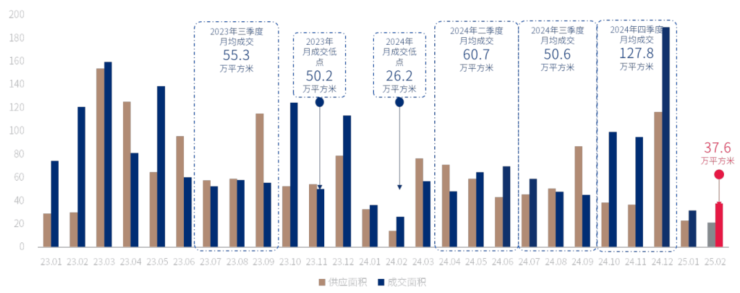 克而瑞武汉监测数据显示,2月武汉商品住宅供应约21.4万平方米,供应环比下滑7.2%,同比维持50%的增幅,整体新增供货不足;成交37.6万平方米,环比上涨19.3%,同比上涨43.4%。“成交以少量区域红盘补货及历史库存消化为主,其中准四代住宅项目去化率均在50%以上。”
