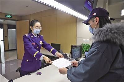 2021年1月4日,在海淀区综合行政服务中心消防窗口,北京市排名前列张《公众聚集场所投入使用、营业消防安全许可证》发放给相关企业。 新京报记者 王飞 摄