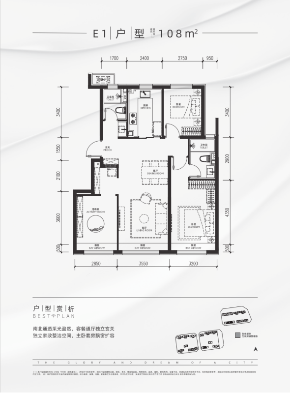 108㎡三居户型,南向三面宽,南北通透、全明户型,LDK一体化空间,南向面宽约9.6m,客厅+主次卧朝南,格局方正,超高得房率,妥妥的明星产品。