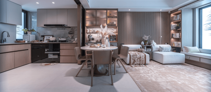 M1.0满装,全屋平嵌式家电一站式配齐,18组柜体满足不同家庭阶段的收纳所需,智能家居、灯光、静音门等细节全部经过悉心考量,用好住、好用、好看的家,满足当代家庭的生活向往。