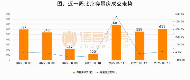 【北京成交日报】08月13日新房成交186套、二手房611套;涨价房源63套