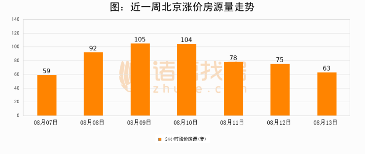 根据诸葛找房数据显示,北京24小时涨价房源量为63套,较08月12日减少12套,环比下降16%。与此同时,涨价房源占比小幅回落,对于购房者来说是一个入市窗口期,购房者可抓住时机入市。