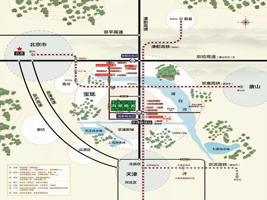 宝坻区是天津距离北京较近的辖区,2条高铁在建(京滨、京唐)、1条规划(津承),未来到北京也就20分钟左右路程,大大缩短了空间距离。