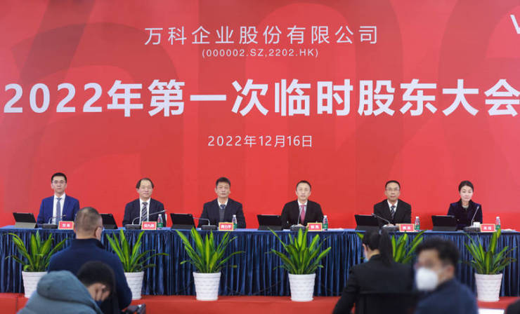 12月16日,深圳盐田大梅沙,万科2022年第一次临时股东大会召开。本次股东大会包括提请股东大会授权发行直接债务融资工具、提请股东大会给予董事会发行公司股份之一般性授权2项议案。