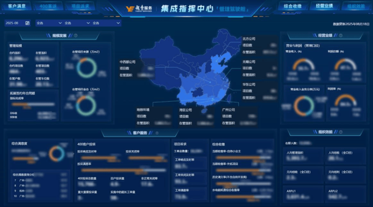 更为关键的是管理模式的变革。在越秀服务的集成指挥中心,大屏幕上实时跳动着全国项目的设备运行数据,从“人盯人”管理模式转向数据驱动的智能化督导。这背后靠的是自研EBA系统+RTU网关,从硬件设计到软件算法均实现100%自主可控,有效规避外部技术依赖风险,确保设备在数据安全、功能迭代及定制化服务方面具备灵活响应能力,为业务持续创新提供坚实技术保障。目前,越秀服务已实现项目穿透,完成物业驾驶舱主屏、客户满意和综合收缴分屏上线,通过后台数据倒逼一线规范作业,全面提升服务水平。