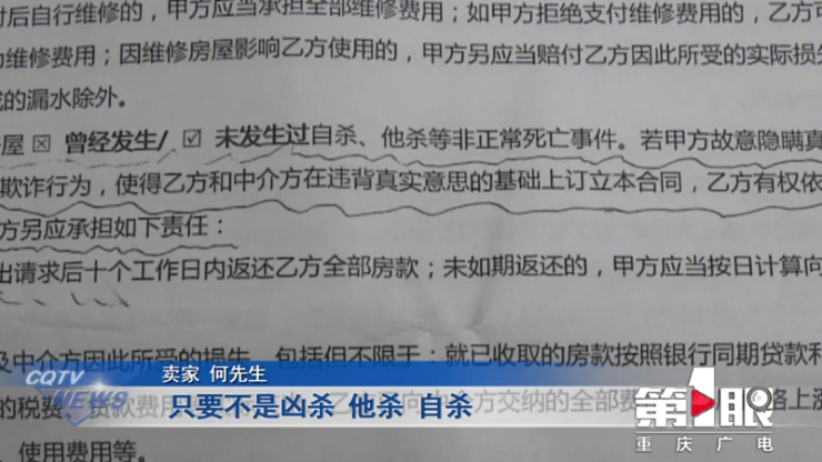 第1眼-重庆广电消息,11月初,谭先生买了一套房子,签了合同下了定金之后,他被人告知,这套房子里发生了一件让他难以接受的事情,但卖方和中介却没有告诉他。