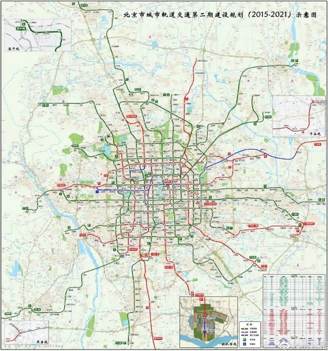 就在前不久,北京市发改委公布了一份“北京市城市轨道交通第二期建设规划(2015-2021)示意图”。根据图示,目前北京市轨道交通路网运营线路达22条,运营总里程达608公里,车站数量达378处,其中包括换乘站56座。截止到2021年,北京轨道交通在建20条(段),线路将全部通车,总长338公里,车站160座,到2020年底,北京16区将实现区区通轨道目标。