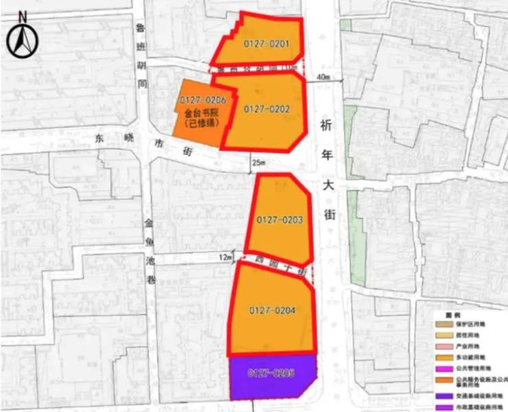 地块由4个子地块组成,沿祈年大街呈南北排列。