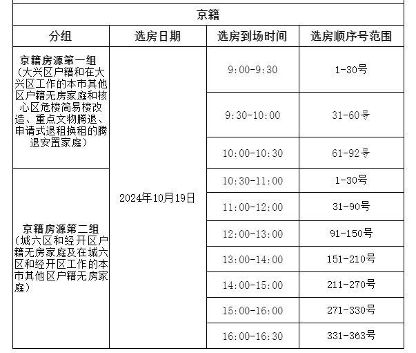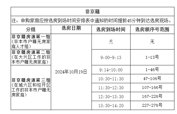 最后附上选房时间表,申购家庭应按选房到场时间安排表中通知的时间提前45分钟到达选房现场