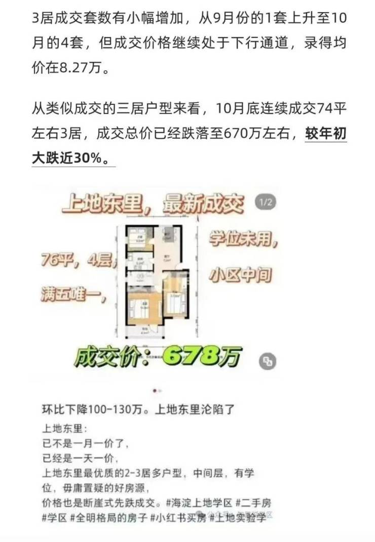 最近一两个月,海淀北部的房价已经乱套了。各个板块,几乎每天都有创新低的成交。