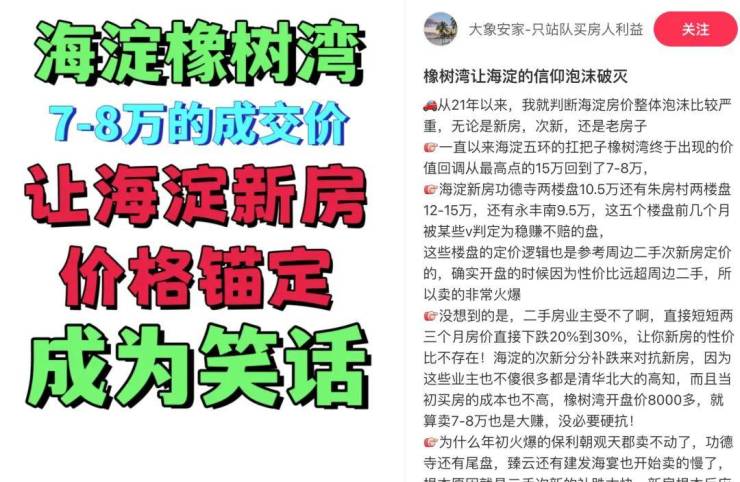 作为海淀北部房价标杆的橡树湾,正经历着一场价格崩塌。