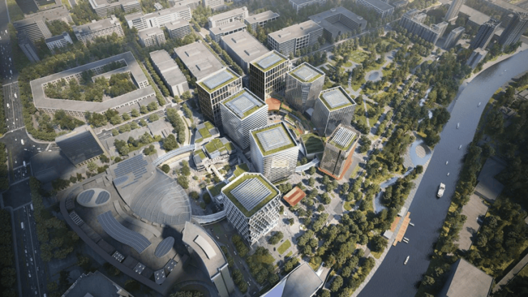 双河也将经1公里明渠汇流,设置游船港、游享廊,更国际潮流的水岸生活已然在路上。