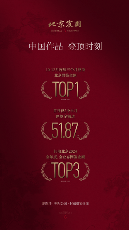 项目10-12月连续三个月蝉联北京月度网签金额TOP1,更是仅用了2个半月时间,斩获北京全年度市场网签金额TOP3。