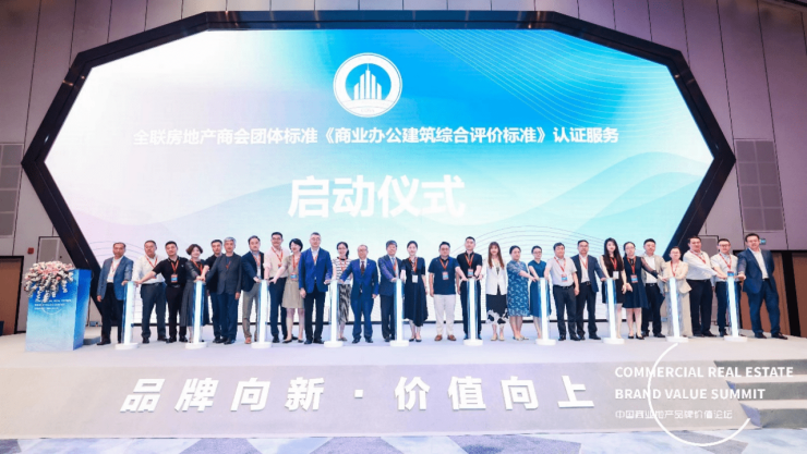 论坛期间,由全联房地产商会主办,全联房地产商会写字楼分会承办的的《商业办公建筑综合评价标准》认证服务启动仪式隆重进行。来自大家保险、远洋集团、银泰基业、首创城发、合景泰富、北京万科、中国金茂、中信和业、米兰之窗、金地集团、坚朗五金、中海新城、戴德梁行、高力国际、富华置地等30位地产高管和行业领导,一起点亮共同见证我国首个商业办公建筑综合评价标准星级评价体系和认证评定办法通过专家审核,认证授牌工作即将正式启动。