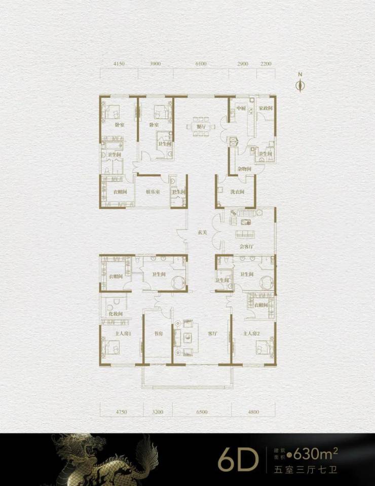 6D户型:630㎡,五室三厅七卫,没错7个卫生间...