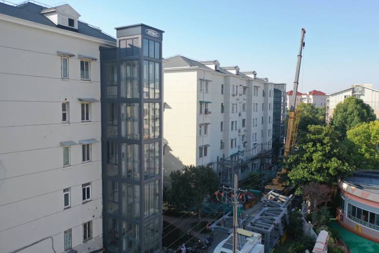 随着老旧小区改造的推进,“旧改”的内涵更为丰富。图为上海一小区批量加装电梯。图/IC photo