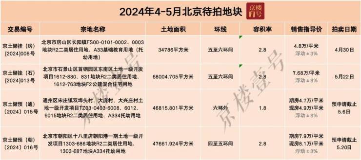 进入4月,北京土拍暂停一小段落,本月仅1宗地块将在月底竞拍,不过算上预售,近期共4宗地块即将入市,下面重点来看看。