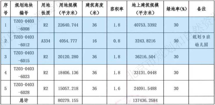 地块组团中6008、6015是住宅用地,容积率1.8,6012是幼儿园用地。