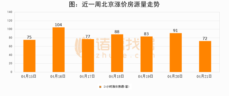 根据诸葛找房数据显示,北京24小时涨价房源量为72套,较04月20日减少19套,环比下降20.9%。与此同时,涨价房源占比小幅回落,对于购房者来说是一个入市窗口期,购房者可抓住时机入市。