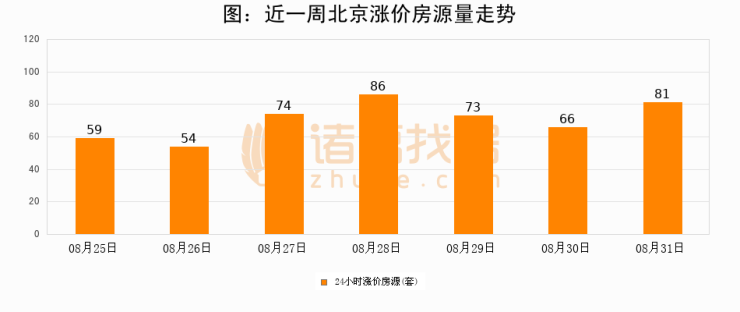 根据诸葛找房数据显示,北京24小时涨价房源量为81套,较08月30日增加15套,环比上涨22.7%。与此同时,涨价房源占比小幅扩大,业主信心有所提升。