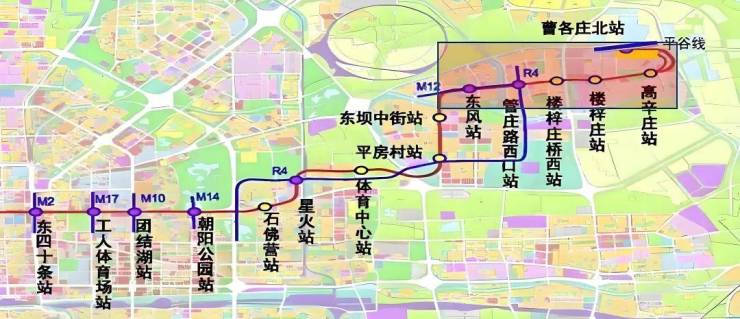 R4一期与3号线的支线往北延伸,在管庄路西口站出现交集,旨在加强中心城和外围新城(第四使馆区、首都机场、国际交往中心)的连接。