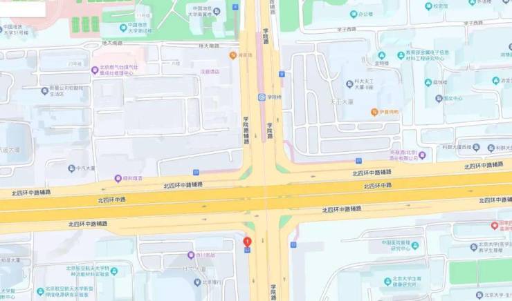 昌平线南延的学院桥站位于北四环和学院路的交汇处,现有的D1口位于北四环学院桥的西北侧,而今年要开通的D2口则是从地下穿过四环路,设置于学院桥的西南角,这将大大方便北京航空航天大学师生的出行。